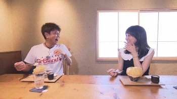 まずは今、茨木市で一番熱いと言われている人気のかき氷店。水川、浜田の前には器からはみ出そうなほどの氷が運ばれる。浜田は「やりすぎ感満載やねんけど」と迫力に圧倒され、水川は「可愛い~」とインスタ映え抜群のかき氷に大興奮。食べた2人は声を揃えて「何これ」と初めての食感に驚愕する。