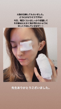 また、目を包帯で覆っていただけに影響が不安視されたが「目は大丈夫です!!あの一瞬の時間の中でしっかり目を閉じていたみたいで」とし「娘も家族も大丈夫ですよ」と大事には至らなかったと記した。