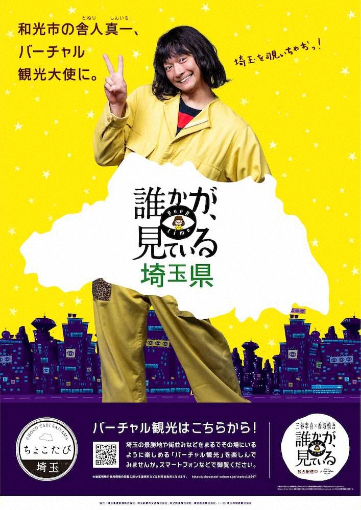 タレントの香取慎吾(43)が主演を務めるアマゾンプライムのドラマ「誰かが、見ている」で演じる舎人真一(とねり・しんいち)が23日、埼玉県のバーチャル観光大使に就任した。