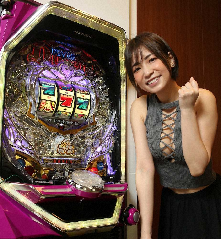 「Pフィーバークィーン2」の隣でポーズを決める大崎由希