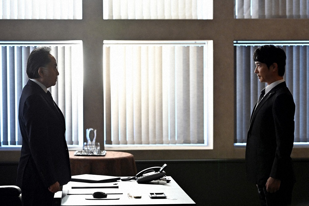 日曜劇場「半沢直樹」最終回。中野渡頭取(北大路欣也)と対峙する半沢(堺雅人・右)(C)TBS