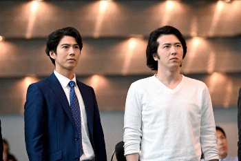 日曜劇場「半沢直樹」最終回。失意の半沢(堺雅人)の背中を押す(左から)森山(賀来賢人)と瀬名(尾上松也)(C)TBS
