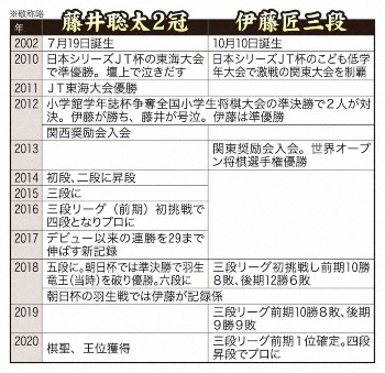 「将棋に集中したかった」と高校は1年で中退。自身がプロ入りを懸けて苦悩する間に、かつてのライバルは2つのタイトルをつかんだ。藤井がレジェンド羽生善治竜王(当時)を破った18年2月の朝日杯オープン戦準決勝と、続く広瀬章人八段との決勝で伊藤は記録係を担当。目の前で、トップ棋士を次々と倒し優勝した藤井と自身を比べ「今は実力の差がある。現状では対戦することすら想像できない。戦えるところまで行かなくてはいけない」と静かに闘志を燃やした。