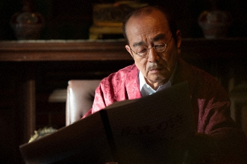 連続テレビ小説「エール」第37話。裕一(窪田正孝)が作曲した交響曲「反逆の詩」の楽譜を読む小山田(志村けんさん)(C)NHK