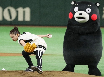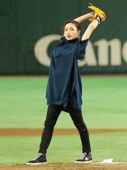 17年8月、サントリードリームマッチで4年連続の始球式に登板し、サブマリン投法を披露する石原さとみ