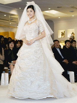 05年3月、初めてウエディングドレスを着てモデルを務めた石原さとみ