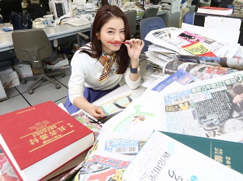 16年9月、日本テレビのドラマ「地味にスゴイ!校閲ガール」の宣伝で来社し、編集局で校閲の仕事をする石原さとみ