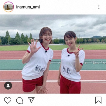 稲村亜美&鷲見玲奈アナ“体操着2ショット”に反響「どこの女子高生?」「美しい」