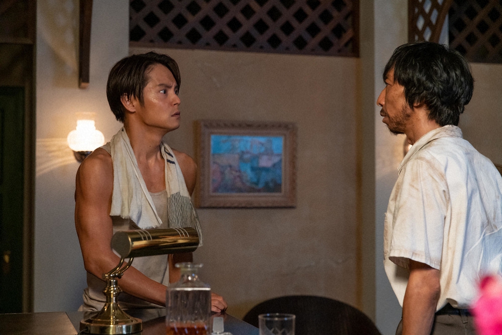 連続テレビ小説「エール」第87話。前線から戻ってきた洋画家の中井(小松和重)と激論を交わす裕一(窪田正孝・左)(C)NHK