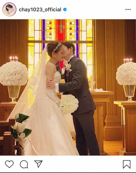 今年5月に一般男性との結婚を発表したシンガー・ソングライターでモデルのchay(29)が14日までに自身のインスタグラムを更新。結婚から半年、挙式したことを報告した。