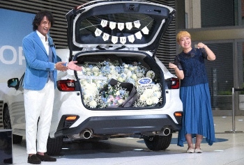 元サッカー女子日本代表FWでタレントの丸山桂里奈(37)と元サッカー日本代表GKで解説者の本並健治氏(56)が15日、都内で行われたSUBARUの新型「レヴォーグ」発表記念イベントに夫婦そろって出席した。