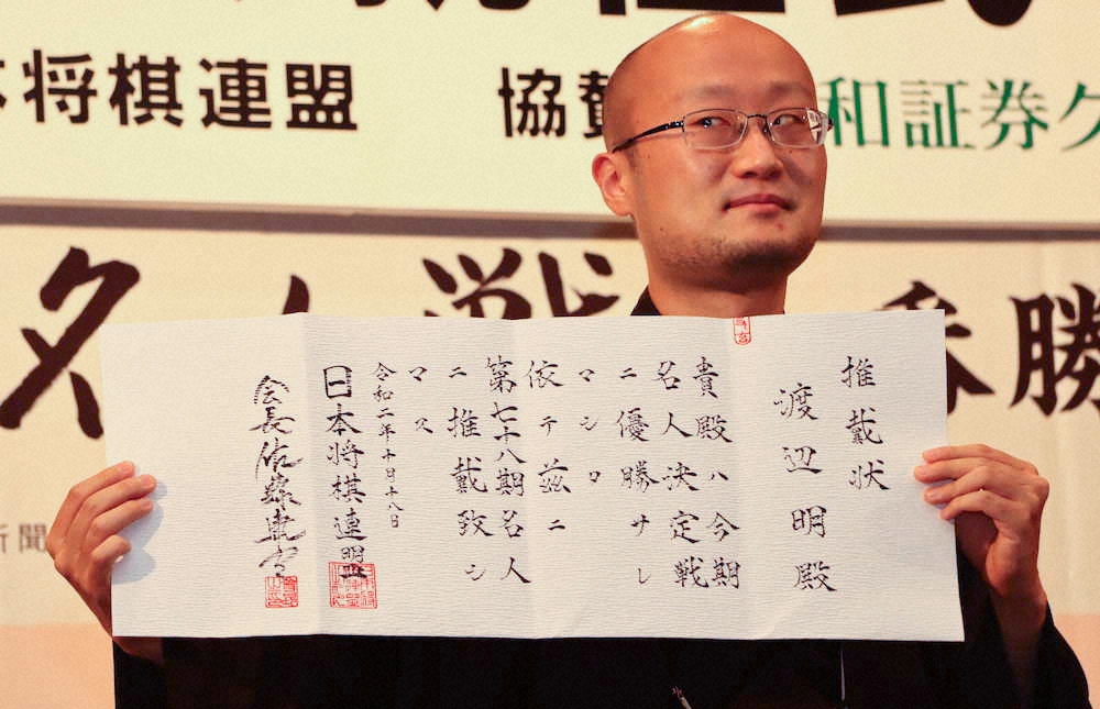 推戴状を手にする渡辺明名人