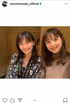 女優の佐々木希(32)が22日、自身のインスタグラムを更新。親友の女優・大政絢(29)と会食を楽しむ写真を公開した。