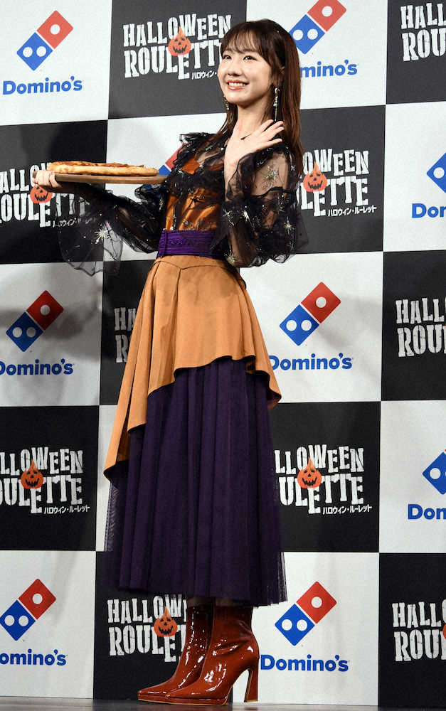 ドミノ・ピザ「ハロウィン・ルーレット」PRイベントに出席した柏木由紀