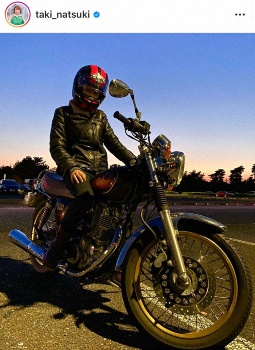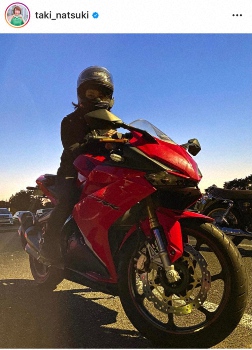 コメント欄には「滝ちゃん、カッコいい~」「バイクがよく似合ってる」「お二人とも全身黒でカッコいい」「バイクの女神が2人」と反響の声が集まった。