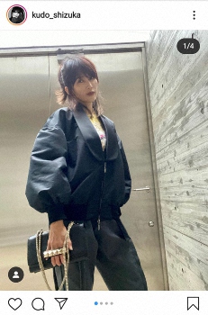 また、自身の私服写真も投稿。この日はゆったりとしたシルエットの黒のジャケットとパンツという服装だったが、カジュアルブランド「ディッキーズ」のパンツが縫い目が外に出ている独特なものだったことから、ファンも「今日はまたスタイリッシュな装いです」「お母さん世代が見たら、『静香さん、ズボン裏向きやーん』っていうヤツですね」「かわったパンツのデザインですね。お似合いです」「これは…しーちゃん以外の人が着れない洋服です」「パンツのデザインが斬新ですね 私が履いてたら絶対母親に『裏表逆よ』って言われてるな」と見事に着こなす工藤に賞賛の声が集まっている。