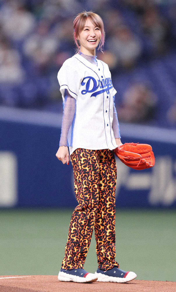 LiSA、魅せた…ドラゴンズ&鬼滅愛の鮮やかネイルアートで始球式「ビッシーも連れて全力投球」