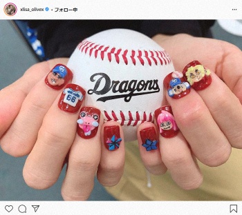 アップされた画像は色鮮やかなネイルアート。ファンと公言する「ビシエド」のユニホームのほか、中日のマスコット「ドアラ」など、大の“竜党”らしく、ドラゴンズ愛にあふれるものに。中には現在、人気沸騰中のアニメ「鬼滅の刃」のキャラクター「煉獄杏寿郎」の姿もあり、まさに“LiSA”が詰まったデザインとなっていた。