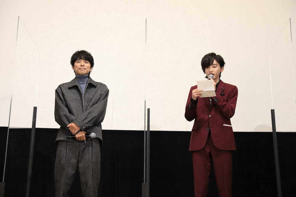撮影現場では事務所の後輩と“タメ口”協定を結んで雰囲気づくりにも努めた。そんな苦労にサプライズで報いたのが道枝。「パパの背中を見て、僕も少しは成長できたかな?(中略)ありがとう、パパ。そして、ありがとうございます、井ノ原さん」と感謝の手紙を読み上げると、井ノ原も感極まった表情。「後輩だけど尊敬しています」と声を震わせて応えた。他に森七菜(19)、映美くらら(41)、阿部純子(27)が登壇。この模様は全国99の映画館に生配信された。