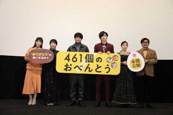 V6の井ノ原快彦(44)とジャニーズJr.の「なにわ男子」道枝駿佑(18)が父子役で共演した映画「461個のおべんとう」(監督兼重淳)の公開記念舞台あいさつが7日、都内の劇場で行われた。声出しが禁止されたためファンは精いっぱいの拍手を“声援”に代えた。