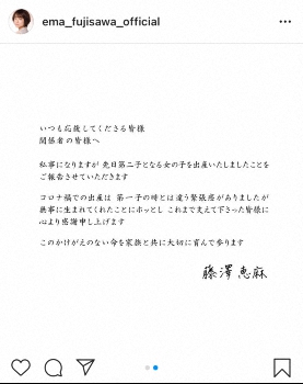 藤澤は事務所の公式サイトでも直筆の著名入りで我が子の誕生を報告している。