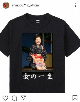 東京・新橋演舞場で上演中の舞台「女の一生」で主演を務めている大竹。「今日マネージャーのAちゃんがこんなTシャツ作ったらどうですか?と言ってふざけて見せてくれた」と明かし、自身が正座しながら笑う姿がプリントされた“女の一生Tシャツ”の写真をアップした。