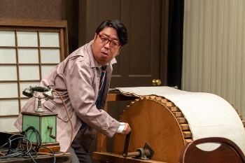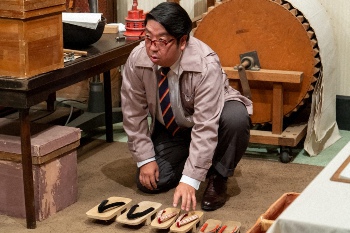 連続テレビ小説「エール」第111話。土曜ナビゲーターを務めるバナナマンの日村勇紀が念願の本編出演&朝ドラ初出演。NHKの音響効果担当・春日部を演じる(C)NHK