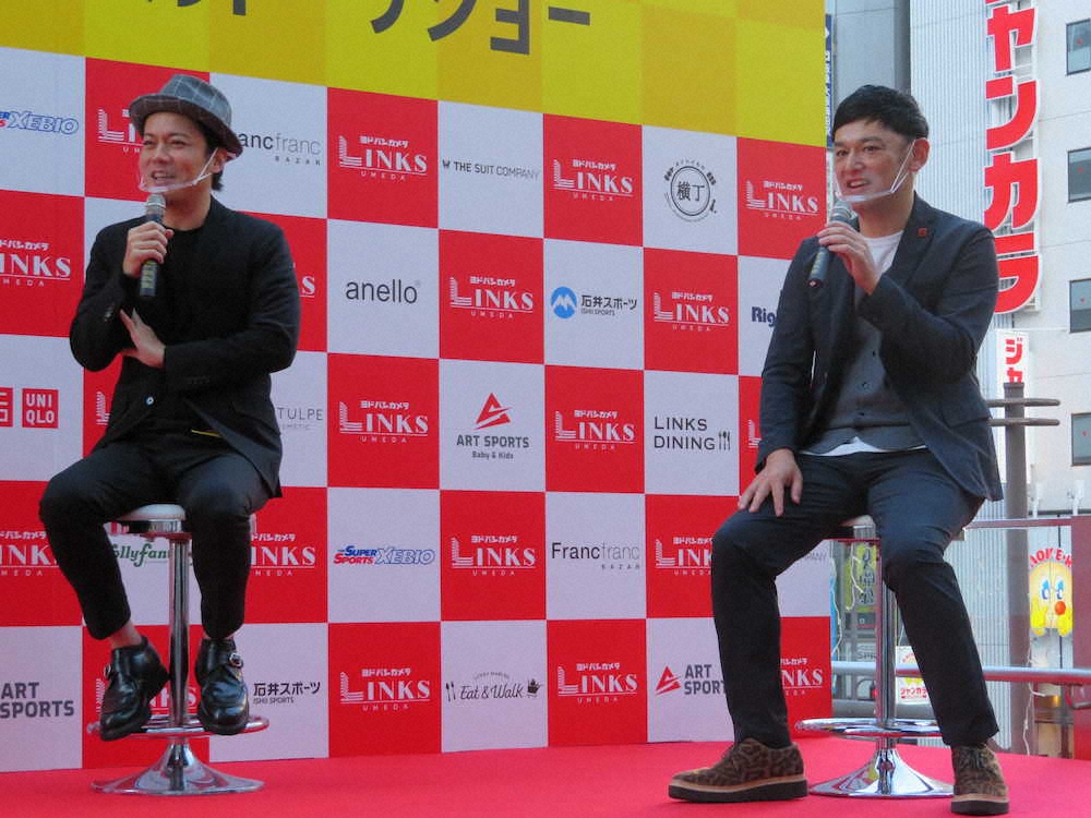 人気お笑いコンビ「シャンプーハット」が14日、大阪・梅田の大型商業施設LINKSの1周年記念トークショーを行った。