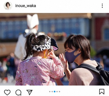 先んじてインスタグラムの投稿にて家族で東京ディズニーリゾートに泊りがけで遊びに行っていたことを報告していた井上。この日の更新では「今回のディズニーでは、たくさんの写真を撮ってくれていた旦那さん ありがとう」と夫で映画監督の飯塚健氏(41)への感謝をつづった。