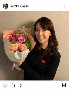須黒アナは花束を手にした写真をアップし「この度、新たな命を授かりました」と報告。「すでに安定期に入っていまして、年末まで仕事をさせて頂き、その後産休に入る予定です」と明かした。