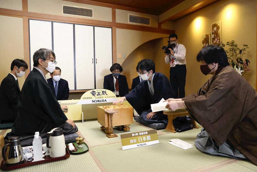<第33期竜王戦七番勝負第4局>初手を指す豊島将之竜王(右)と羽生善治九段(代表撮影) Photo by 代表撮影 豊島竜王VS羽生九段 局面は斬り合いへ進展 竜王戦第4局2日目 ギャラリーで見る この記事のフォト 2020年11月27日の画像一覧 もっと見る 2020年11月27日の画像をもっと見る