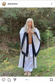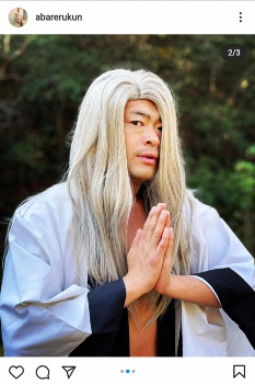 あばれる君は「近付いても…いいかな…?」とだけ記して写真をアップ。普段の丸刈り姿とはうってかわってブロンドのロングヘアとなっており、服装は黒く縁取られた白い作務衣のようなものを身にまとっている。