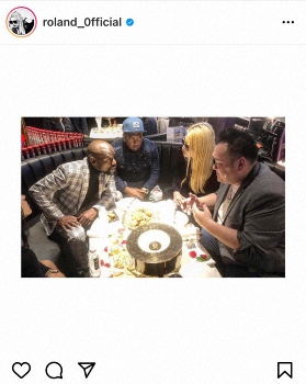ROLANDはプロボクシング元世界5階級制覇王者フロイド・メイウェザー(43=米国)と食事をしている写真を公開。その写真はメイウェザーが身を乗り出し、ROLANDも少し顔を傾けて見つめているため、まるでにらみ合い一触即発のような雰囲気にも見えるが「※決して喧嘩している訳じゃありません、仲良くランチしているだけです」とつづっている。