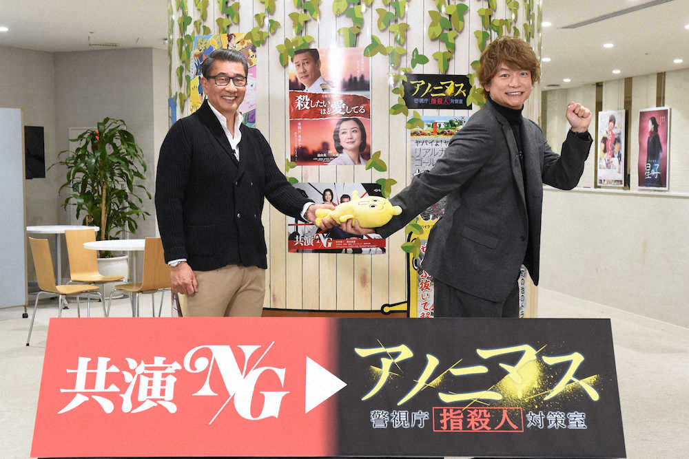 俳優の中井貴一(59)と香取慎吾(43)が6日、東京・六本木のテレビ東京本社で主演ドラマのバトンタッチセレモニーを行った。中井は7日に最終回を迎える「共演NG」(月曜後10・00)に、香取は来年1月スタートの「アノニマス~警視庁“指殺人”対策室~」でそれぞれ主演している。