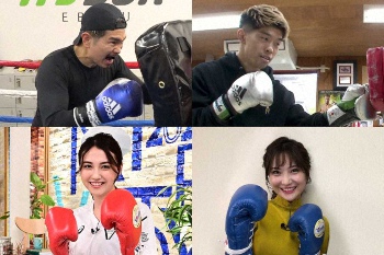 井岡一翔VS田中恒成 大みそか決戦の前に“10秒パンチ”対決 女子アナも参戦!