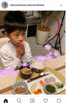 海老蔵 勸玄くんの寝ぐせショットと朝食を投稿「五右衛門頭になってるね」