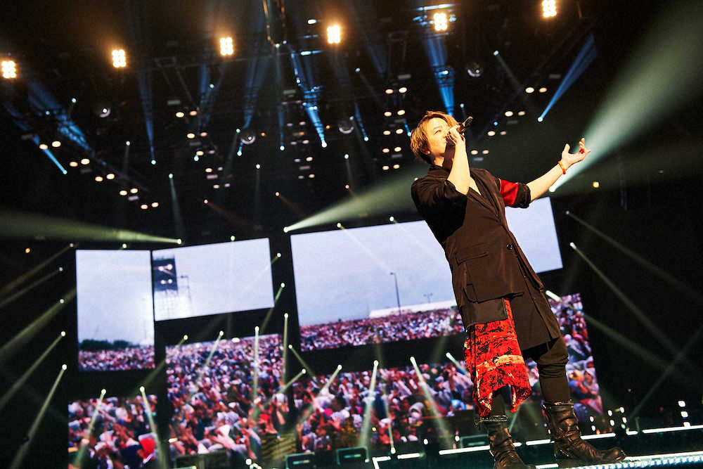 1月26日に横浜アリーナで開催して以来で、コロナ下では初の公演。安全対策のため収容可能人数の半分を動員し、声援も禁止。TERU(49)は「その手で音を鳴らしてもらえれば、それだけで僕らは幸せです」と声援の代わりに拍手を求めた。