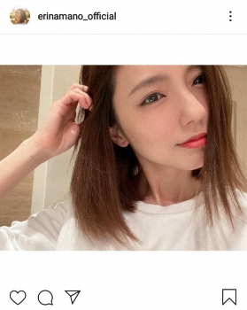 自撮り写真をアップしながら「アイシャドウはブラウン系」「目尻だけ跳ね上げライン」「マスカラ無し」「リップはマット系」とメイクについて説明。「よくするパパッとメイク!」と明かし、ハッシュタグでは「#セルフメイク」と添えた。