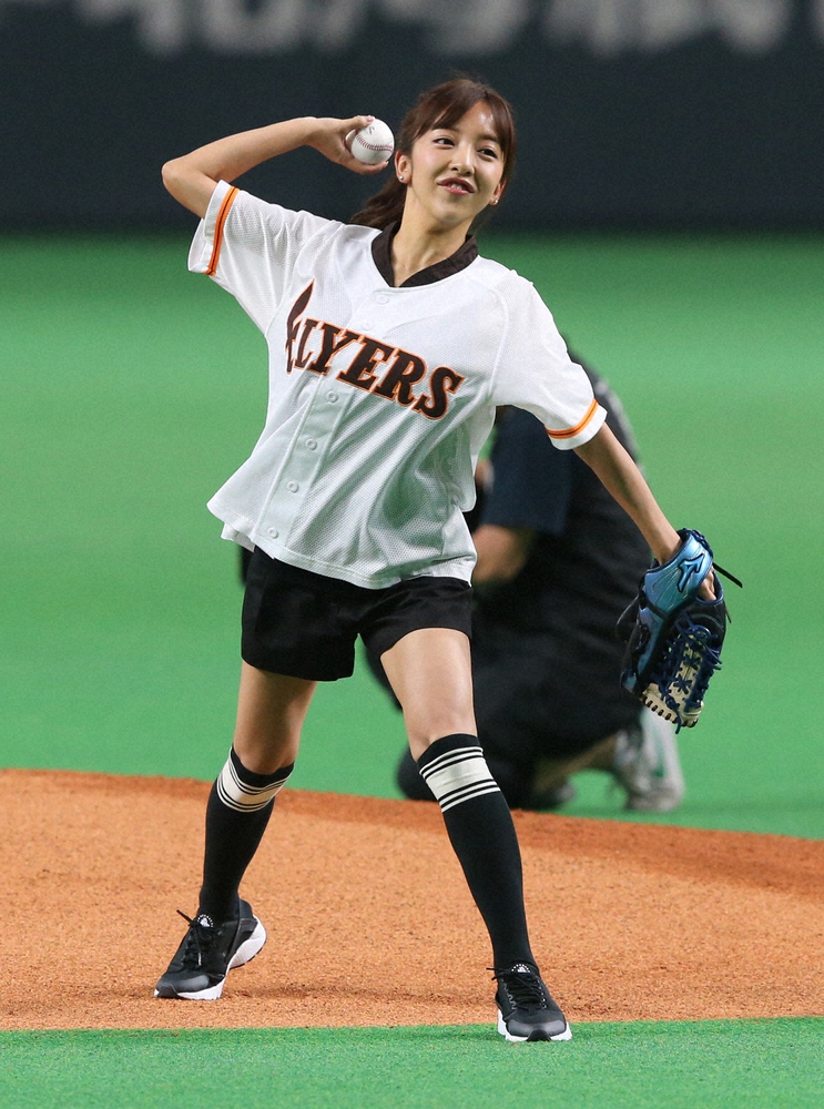 投球はツーバウンドで捕手のミットへおさまり「緊張しましたけど、そこそこ投げられました」と笑顔。「知っている選手」には所属事務所ホリプロの「後輩」でもある日本ハム(当時、現エンゼルス)大谷の名前を挙げ「(ケガから)復活したんですよね?これからどんどん順位を上げてほしい」とエールを送っていた。