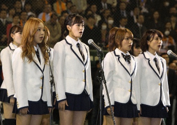 板野は12年3月30日、巨人―ヤクルトの開幕戦でAKB48の一員として、前田敦子、高橋みなみ、大島優子らとともに国歌斉唱の大役を務めた。