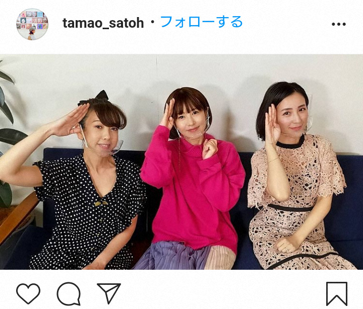 タレントのさとう珠緒(48)が13日、自身のインスタグラムを更新。元ミニスカポリスのタレント・大原がおり(44)、来栖あつこ(42)との3ショットを公開した。
