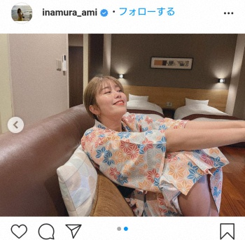 稲村亜美 バースデー浴衣ショット公開に「いつも健康的で大好き」「髪の毛ハイトーン新鮮」