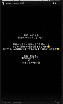 萩花さんとLEOは27日に双方のインスタグラムを更新し、結婚を発表し。夏恋は「萩花、LEOさん ご結婚おめでとうございます!」と書き出し、「萩花から珍しく電話がきたと思ったらまさかの結婚の報告で驚きましたが 新年早々、結婚報告を受けて心が温まりうれしかったです」と喜びをつづった。