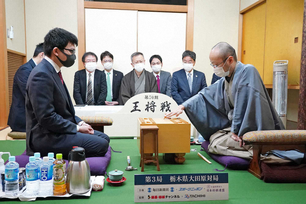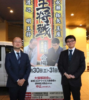 渡辺明王将(36)=名人、棋王との3冠=に永瀬拓矢王座(28)が挑む第70期王将戦7番勝負第3局が30日午前9時、栃木県大田原市の「ホテル花月」で始まった。