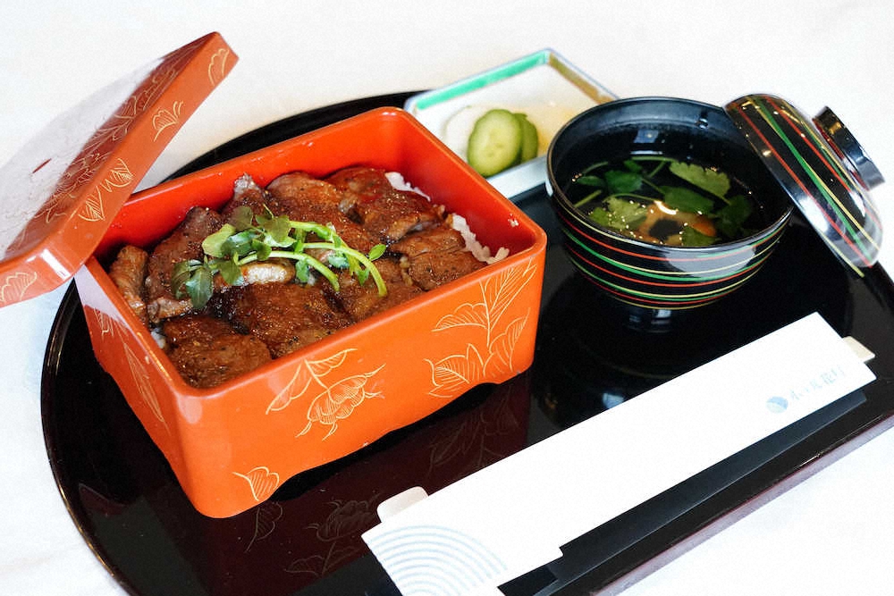 <第70期王将戦第3局初日>渡辺王将の昼食。与一和牛A5焼肉重(撮影・会津 智海)