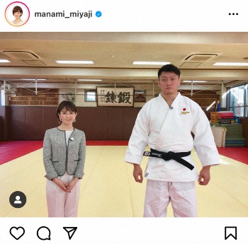 フジテレビの宮司愛海アナウンサー(29)が1日までに自身のインスタグラムを更新、男子100キロ超級東京五輪代表の原沢久喜(百五銀行)との2ショットを公開した。
