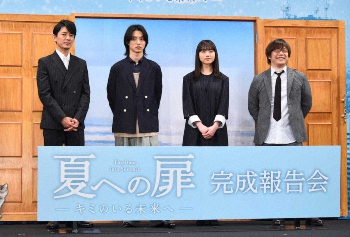 映画「夏への扉―キミのいる未来へ―」完成報告会イベントに出席した(左から)藤木直人、山崎賢人、清原果耶、三木孝浩監督 Photo by スポニチ 山崎賢人、恋愛映画いまだ慣れず 久々出演で赤面「照れちゃいましたね」 ギャラリーで見る この記事のフォト 2021年02月13日の画像一覧 もっと見る 2021年02月13日の画像をもっと見る