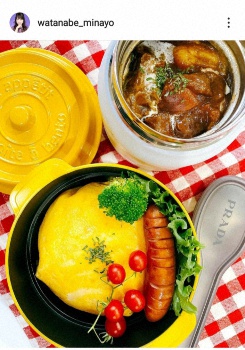 「次男くんのお弁当」との書き出しで、次男でタレントの矢島名月(17)のために作った、スープポットに入ったビーフシチューと、オムライス、ウインナー、野菜の弁当にプラダのスプーンをつけた写真などを投稿した。ハッシュタグでは「Minayoごはん」「ビーフシチュー」「スープポット」「熱々のお弁当」「オムライス」「高校生男子弁当」「行ってらっしやーい」などと書き添えた。