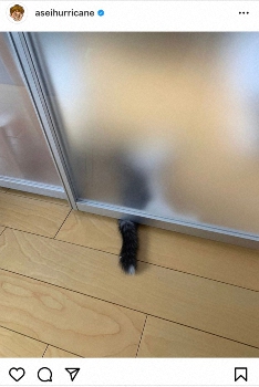 保護猫だった猫を5匹飼っている亜生。猫がシッポを扉の下から出している画像を投稿し、ハッシュタグで「#何としてもこっちの部屋に入りたい #この下の隙間からなんとかこっちの部屋に入りたい #その強い想いだけが彼を突き動かしていた」と飼い猫が無理やり部屋に入ろうとしている様子をつづった。さらに「#しかし #終わりは突然やって来た #急な静けさにあたりは包まれた #ふと見ると#彼は力尽きていた #すりガラス越しに #小さいイビキを確認」と添えた。猫が奮闘している間にまさかの寝落ちをしてしまったようだ。