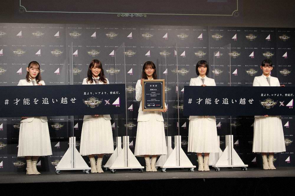 キャプテンの菅井友香(25)、小池美波(22)、田村保乃(22)、藤吉夏鈴(19)、山崎天(15)が登壇。